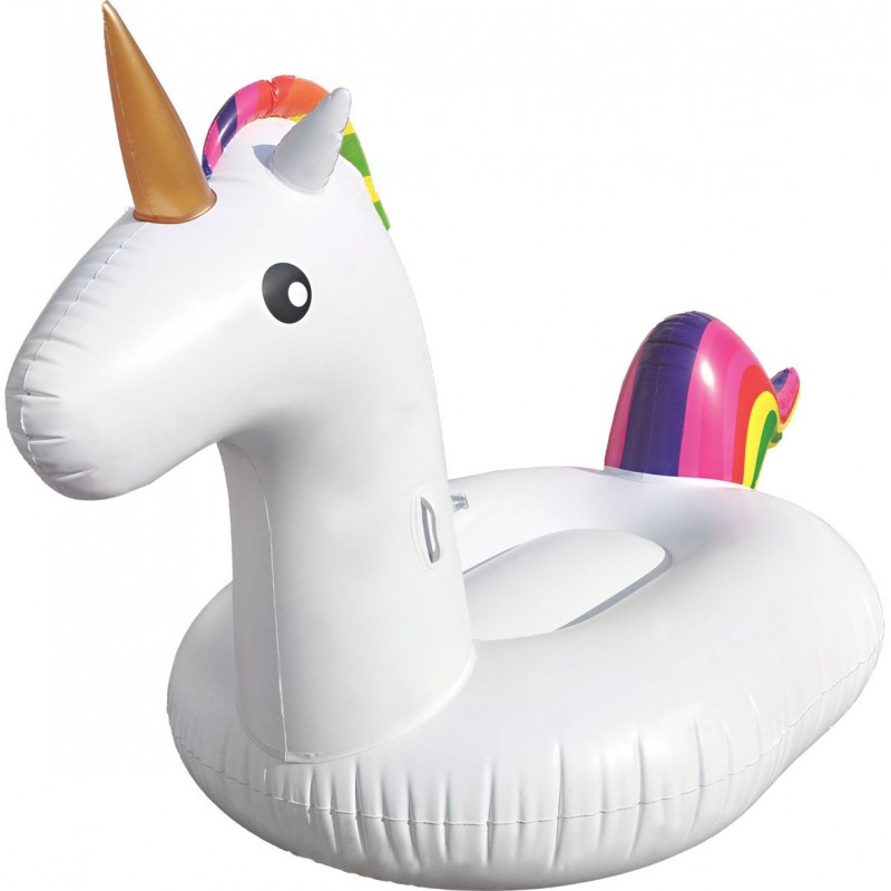 Colorata e divertente la poltrona gonfiabile a forma di unicorno gigante è l'ideale per mare e piscina.