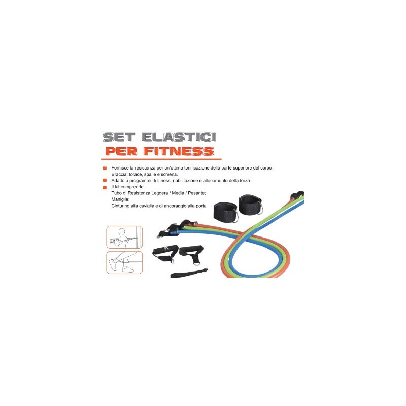 3 eleastici - 2 cavigliere - 2 ganci per manubri - 1 rete per trasporto